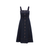 - Women's dark blue button front denim midi dress with A-line silhouette