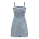 - Women's rhinestone embellished denim midi dress with spaghetti straps