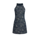 - Women's denim midi dress with ruffle straps & tassel hem