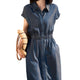 - Denim midi dress with lace-up back ¨C slip-style fitted silhouette
