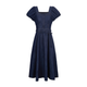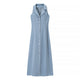 - Women's sleeveless denim midi dress with beaded neckline and waist tie