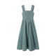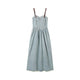 - Embroidery denim midi dress | sleeveless belted women's chic dress