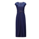 - Women's sleeveless denim A-line dress with layered contrast inner top