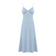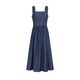 - Women's sleeveless dark denim button-front A-line midi dress with belt
