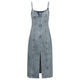 - Bodycon maxi denim dress - ruched detail & spaghetti straps