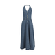 - Women's strapless denim maxi dress with belted waist