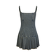 - Women's sleeveless denim mini dress with rhinestone embellishments