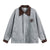 - Badge details with embroidered star and lettering, striped pattern