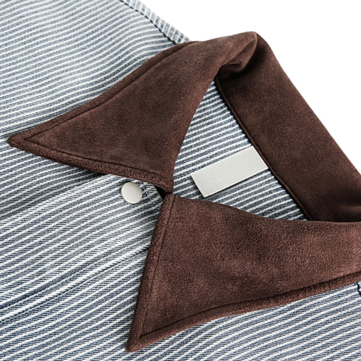 - Contrast brown suede collar