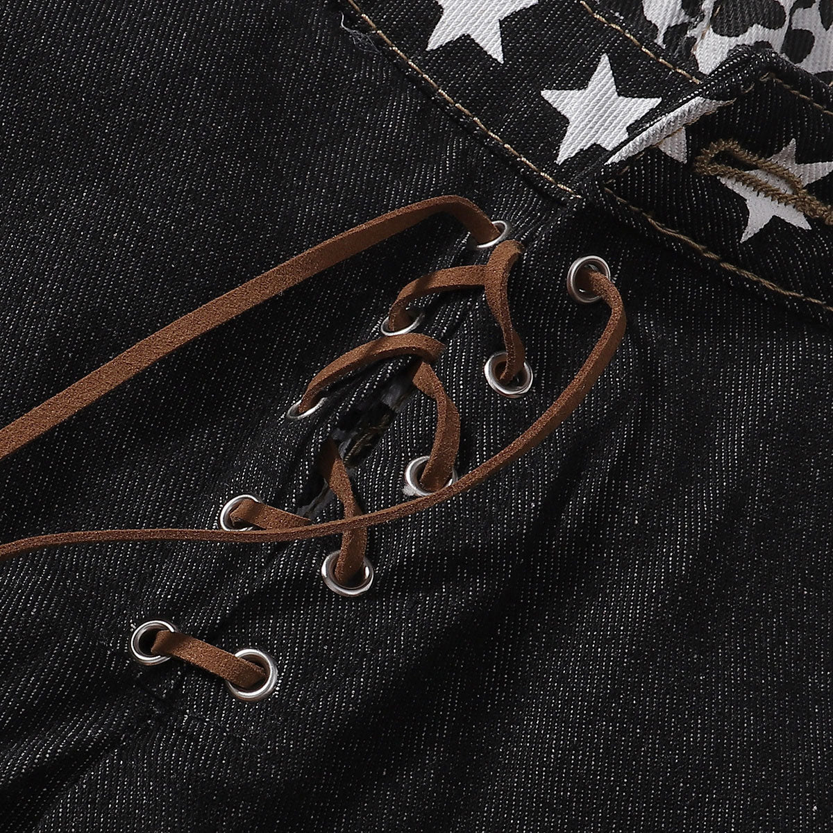 • Made from durable black denim, ensuring a comfortable fit while offering a stylish appearance