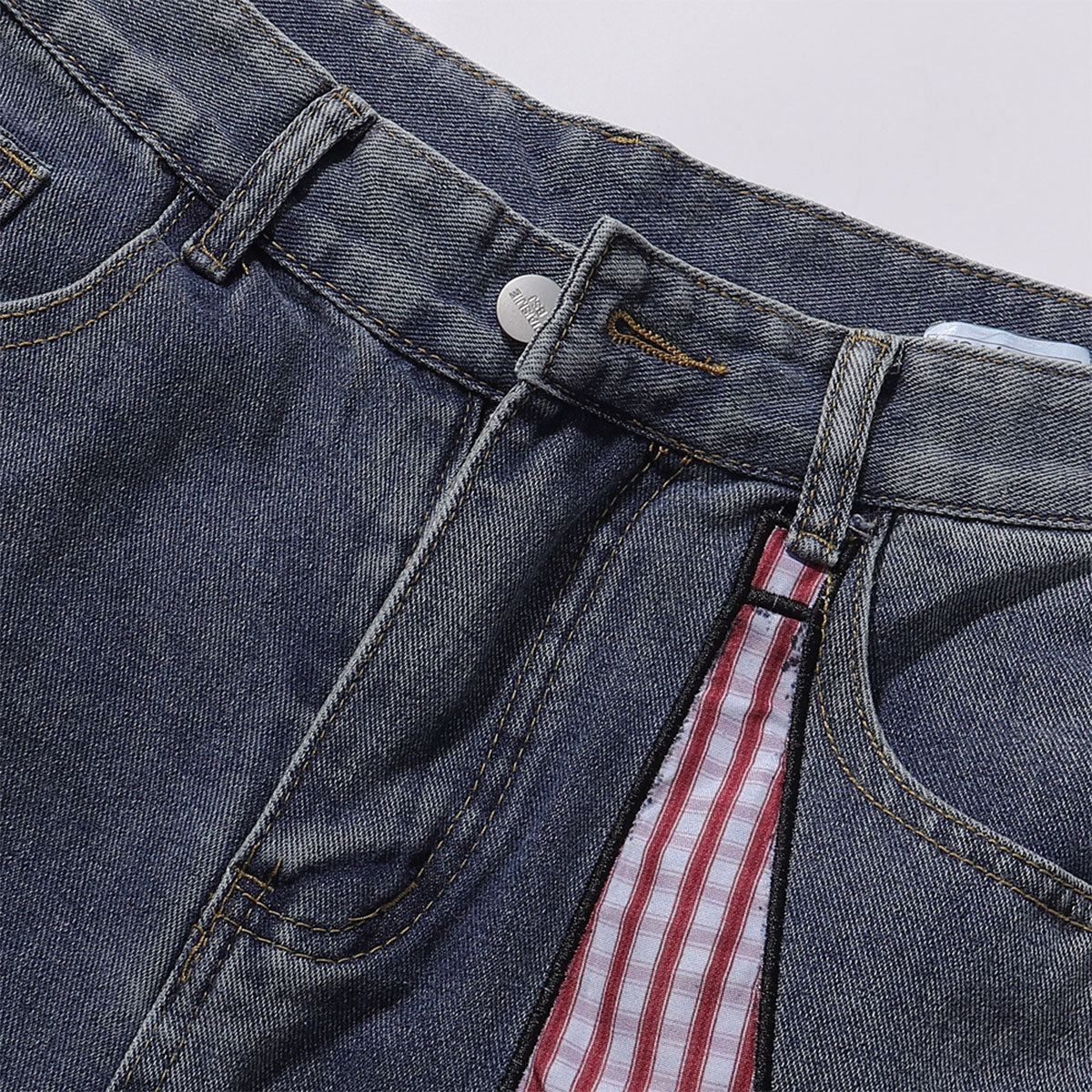- Mid-rise with a button and zip fly closure