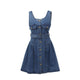 - Women's A-line minidress with halter neck in denim