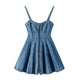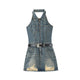 - Women's denim halter mini dress �backless bodycon with ruched detail