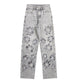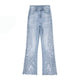 - Bootcut jeans with patchwork, floral embroidery & sequins