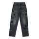 - Embroidered patchwork flared jeans with pearl accents & cut-out details