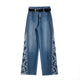 - Whisker jeans with pearl-embellished embroidery & cut-out details