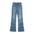 - Embroidered patchwork flared jeans with pearl accents & cut-out details