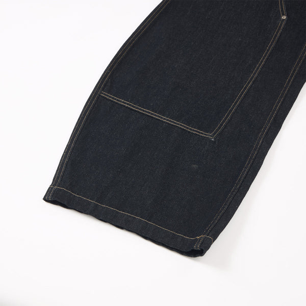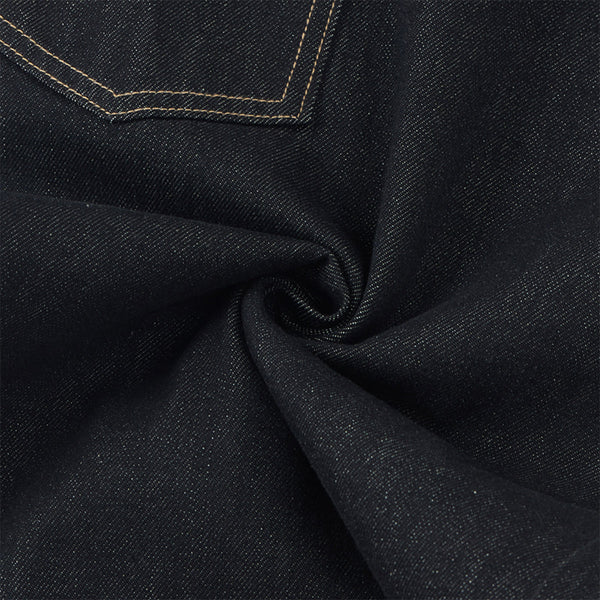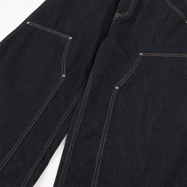 - Bold contrasting yellow stitching enhances the industrial style of the jeans