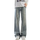 - Wide-leg jeans with textured tie-dye pattern
