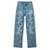 - Women's rose pattern embroidered wide leg jeans – rose lace-cut design with pearl beading