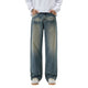 - Baggy jeans in faded medium-wash denim