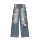 - Women's straight leg ripped jeans | lace print washed denim | distressed vintage