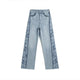 - Floral-embroidered cut-out jeans with rhinestone edge accents
