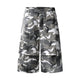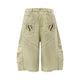 - Distressed denim bermuda shorts with splash print