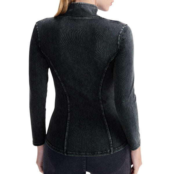 lets you move without restriction. - Women's denim zip-up jacket �slim fit long sleeve high collar