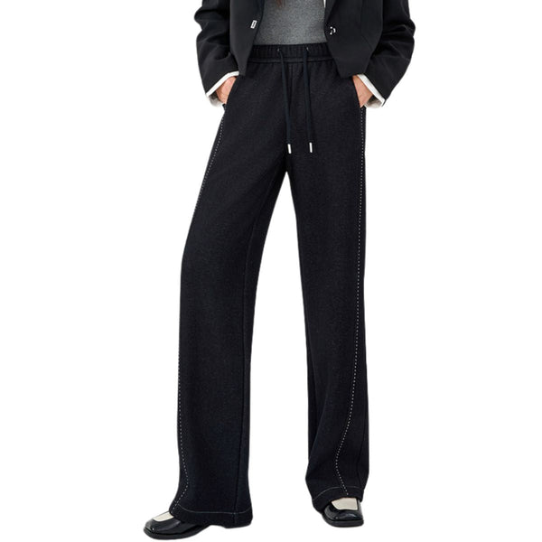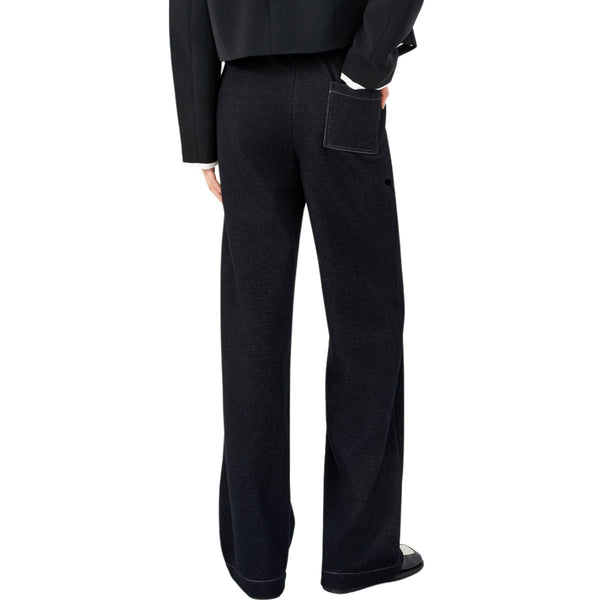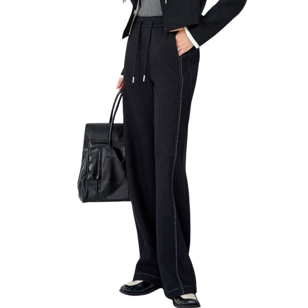 lets you move without restriction. - Women's knit denim wide-leg pants ¨C high-waist relaxed fit with drawstring