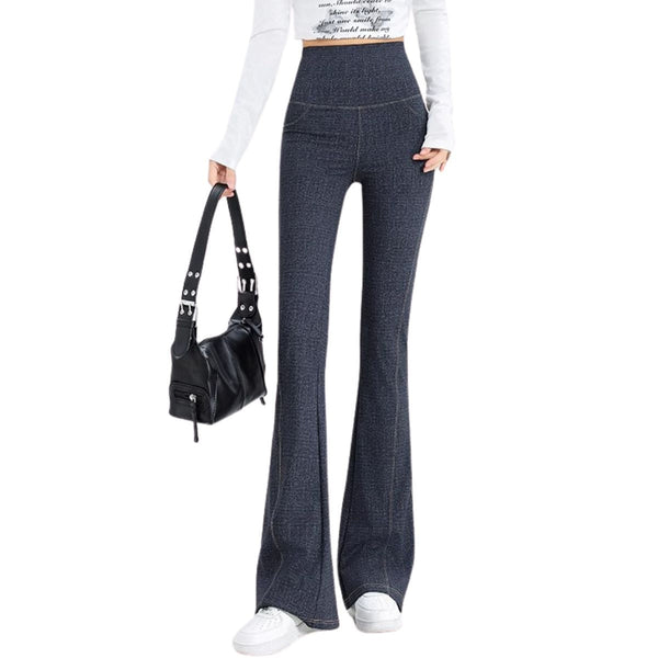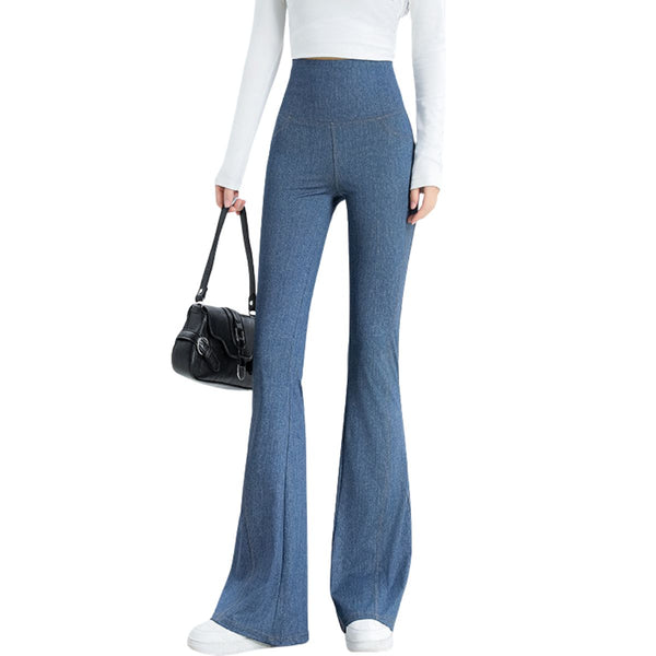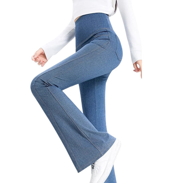 lets you move without restriction. - Women's high-waist knit denim flare pants ¨C stretch bootcut jeans look leggings