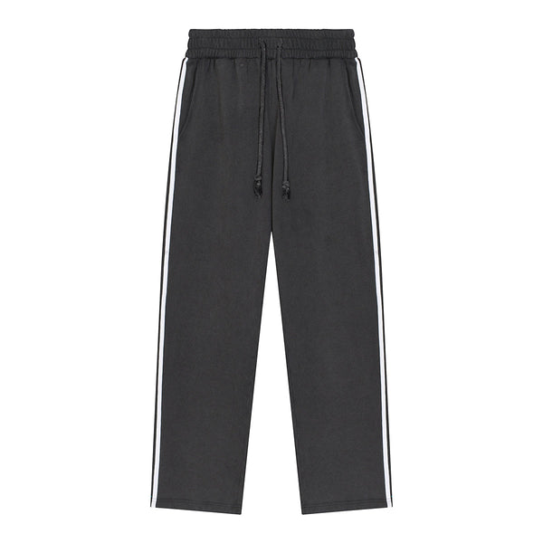 - Wide-leg cotton sweatpants with contrast side-stripe