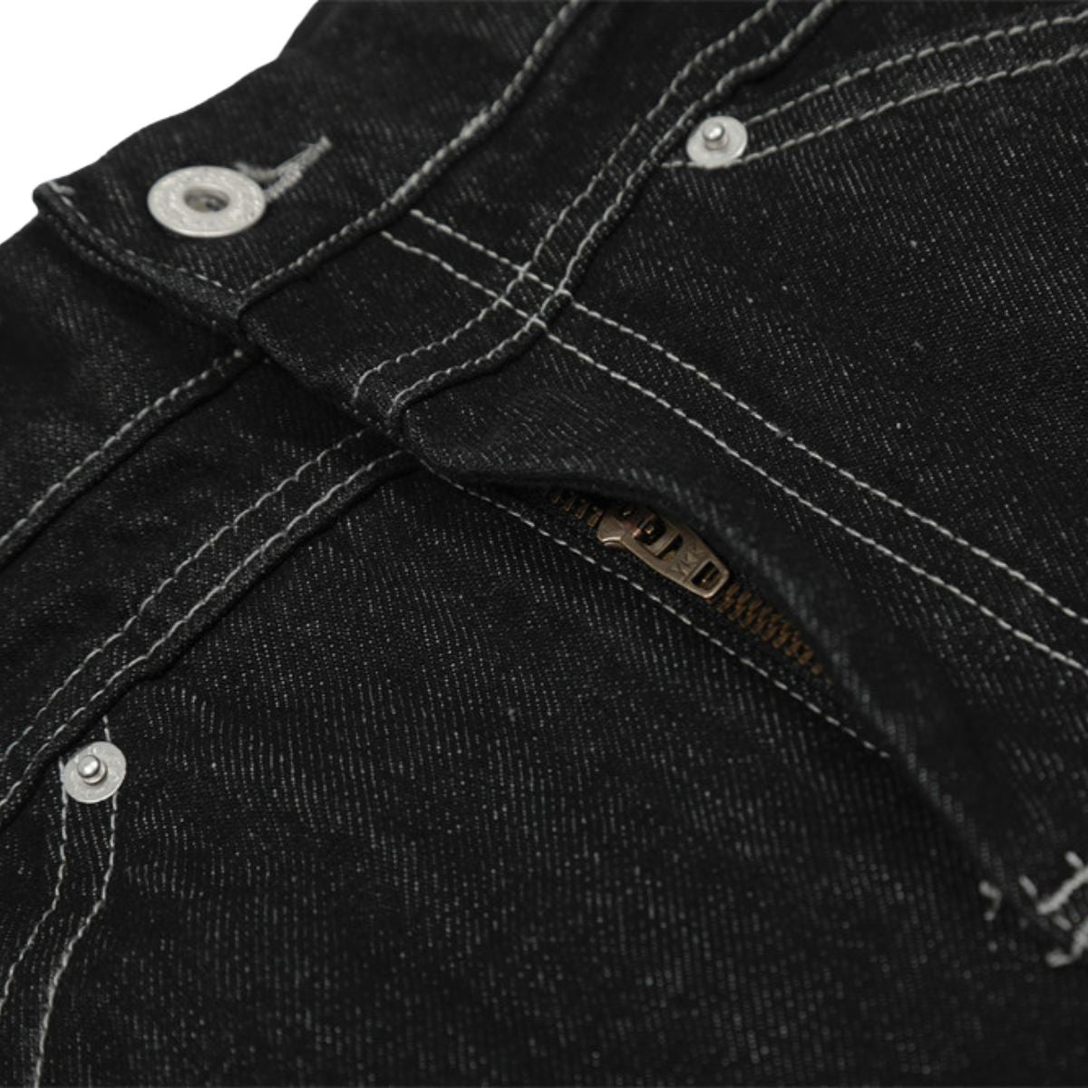 - Signature contrast topstitch running from the waist down to the hem on both front and back, adding a workwear-inspired touch