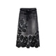 - Artisan heavy embroidery on raw-edge denim skirt