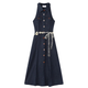 - Women's sleeveless denim shirt dress �button front midi dress with belted waist
