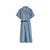 - Short-sleeve denim shirtdress with self-tie belt | below-knee length