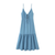 - Light blue denim spaghetti strap dress with tiered hem and front tie