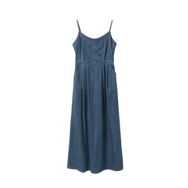 • Women's relaxed fit denim midi dress with spaghetti straps