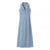 - Sleeveless light blue denim maxi dress with button-down front