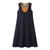 - Women's sleeveless denim A-line dress with layered contrast inner top