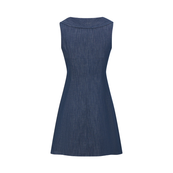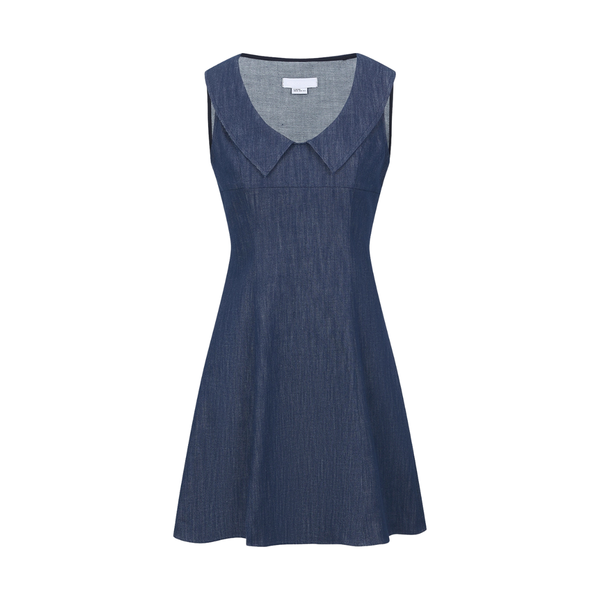 - Women's dark wash denim dress with peter pan collar
