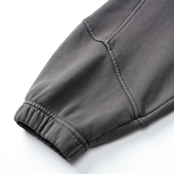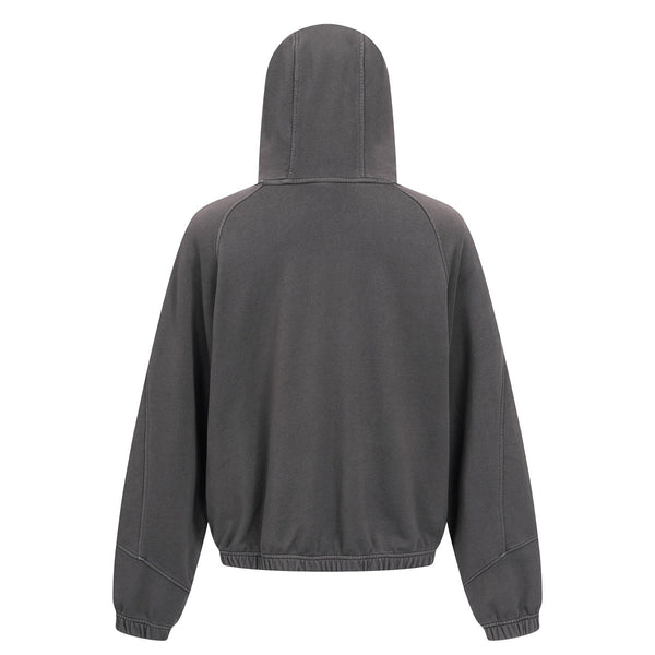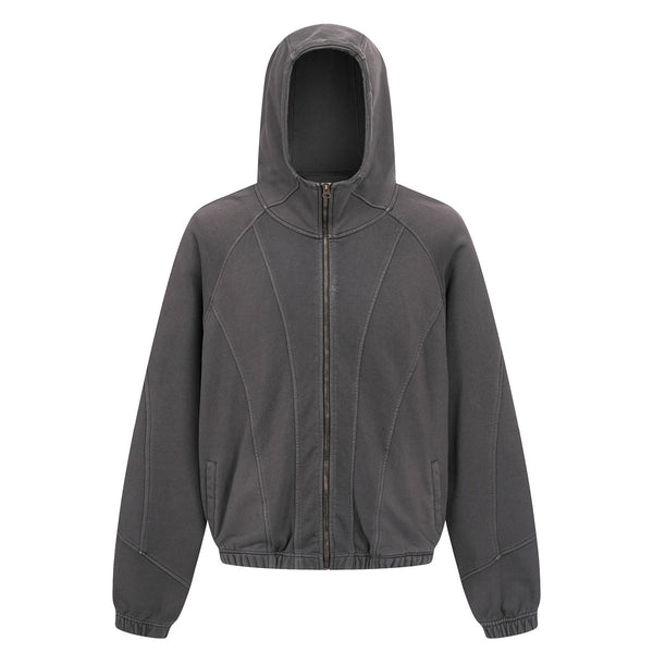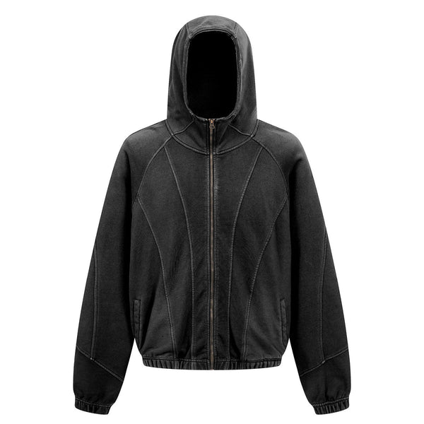 - Vintage Washed Oversized Curved Stitch Zip Hoodie