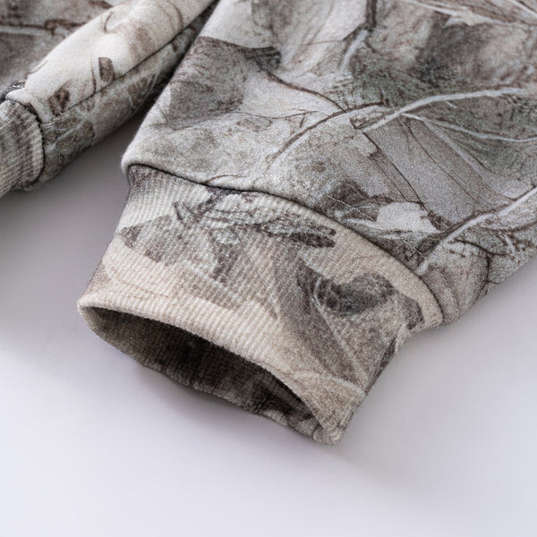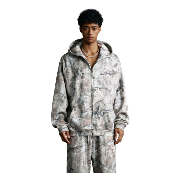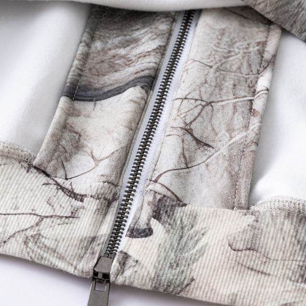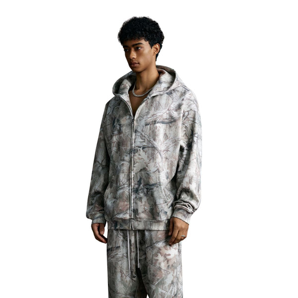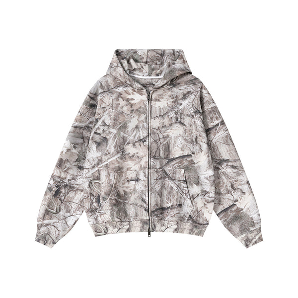 Double-Slider Zipper Branch Camouflage Fleece Hoodie