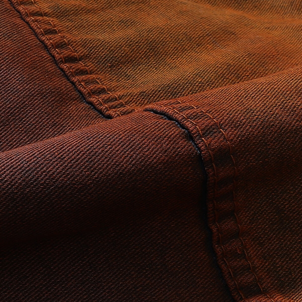 - Ombre effect with red-brown to black transition for a bold streetwear look