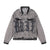 • Vintage-inspired "RESTARALL" denim jacket with bold graphics