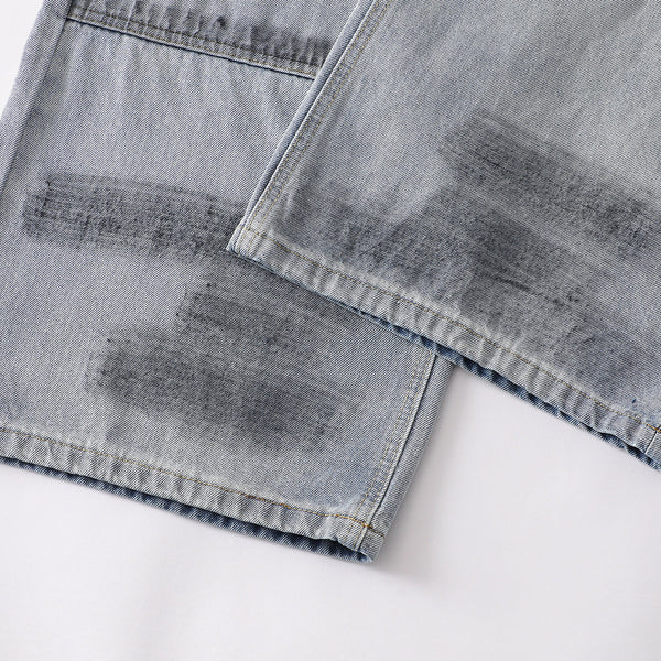 - Heavy vintage wash with contrast shading on thighs and knees