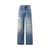 - Vintage washed straight jeans - distressed hem & artisan rips