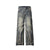 - Retro heavy-duty stitching raw edge bootcut jeans