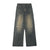 - Heavy whiskering and fading detail on front and back