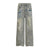 - Distressed wide-leg jeans ¨C heavy ripped vintage washed denim pants
